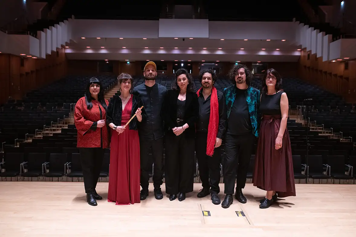 In February 2023, at the Duisburg Philharmonie, we came together for our first performance, bringing different musical backgrounds to create a repertoire that incorporates our individual musical languages. We strive to find a sound that utilizes modal and microtonal concepts in Iranian Radif or Arabic and Turkish Maqams, accompanying them with diverse harmonic concepts in European classical music and jazz. Rhythm and dance are integral to each culture, so we aim to incorporate rhythmic accents into our arrangements. Our ensemble showcases a rich and diverse collection of sounds and melodies, celebrating the beauty of female voices diversity. We had collaborated with Samin Ghorbani, an Iranian singer of Azerbaijani heritage, and performed alongside singers from Syria, Kurdistan, Afghanistan, Turkey, and Iran in our project, Female Voices United, at Duisburg Philharmonie in March 2025 with Basma Jabr, Sakina Teyna, Simin Tander, Merve Akyildiz and Golnar Shahyar.